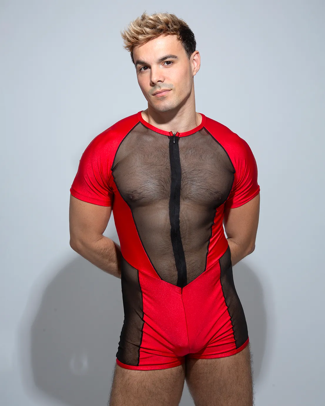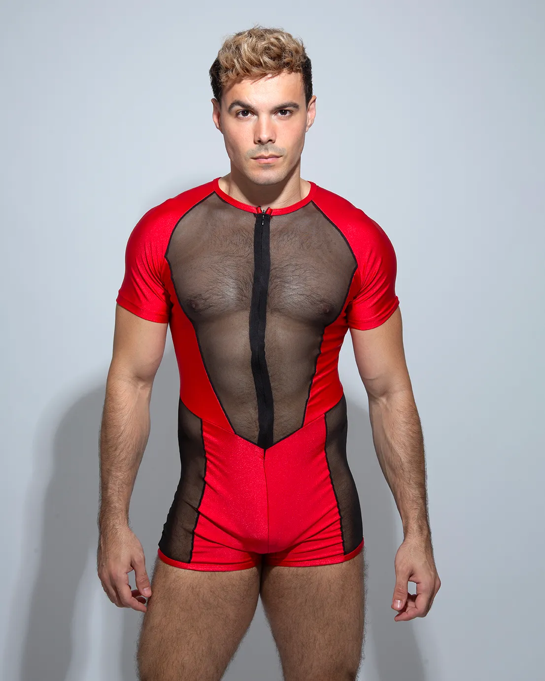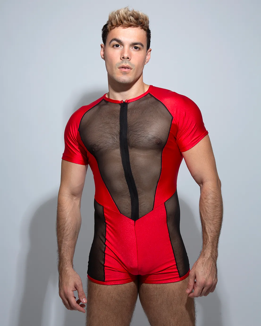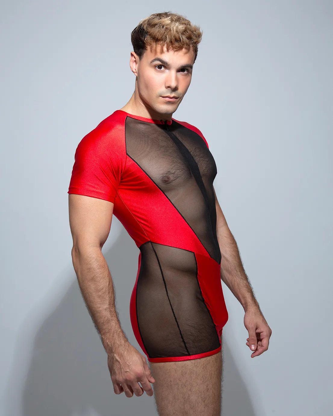 Nuestro diseño APOLO Rojo es muy sexy estiliza tu cuerpo al máximo. Cómodo con cremallera invisible delantero, detalle de red transparente que se ajustará perfectamente a tu cuerpo.