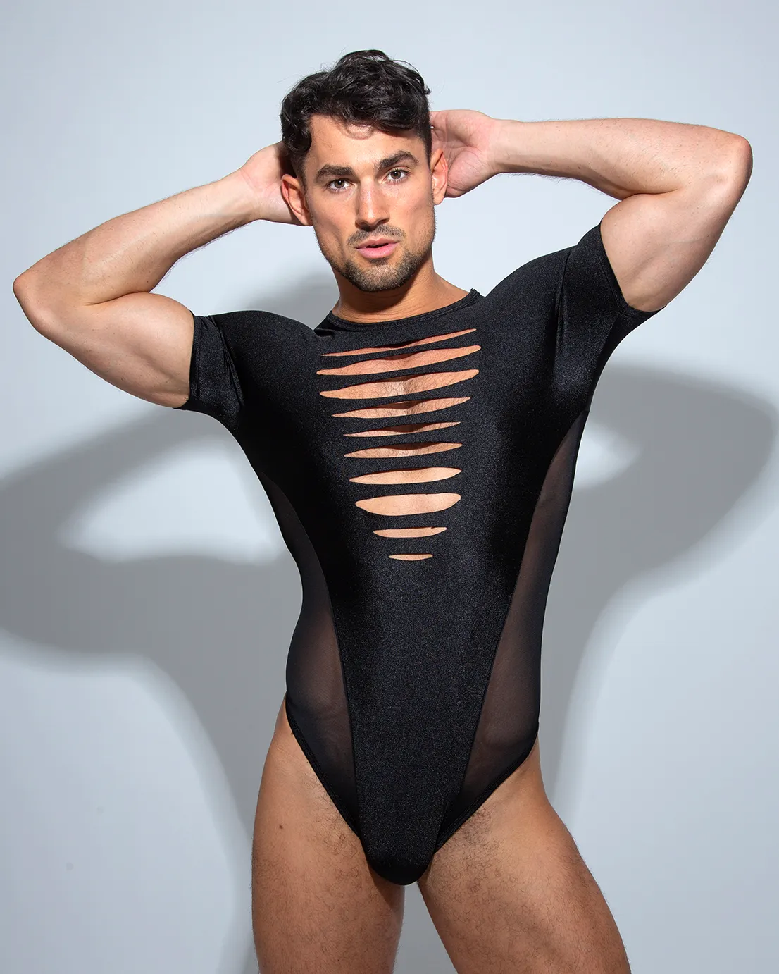 Bodysuit Loki Negro con trasparencia lateral y cortes en el pecho.
