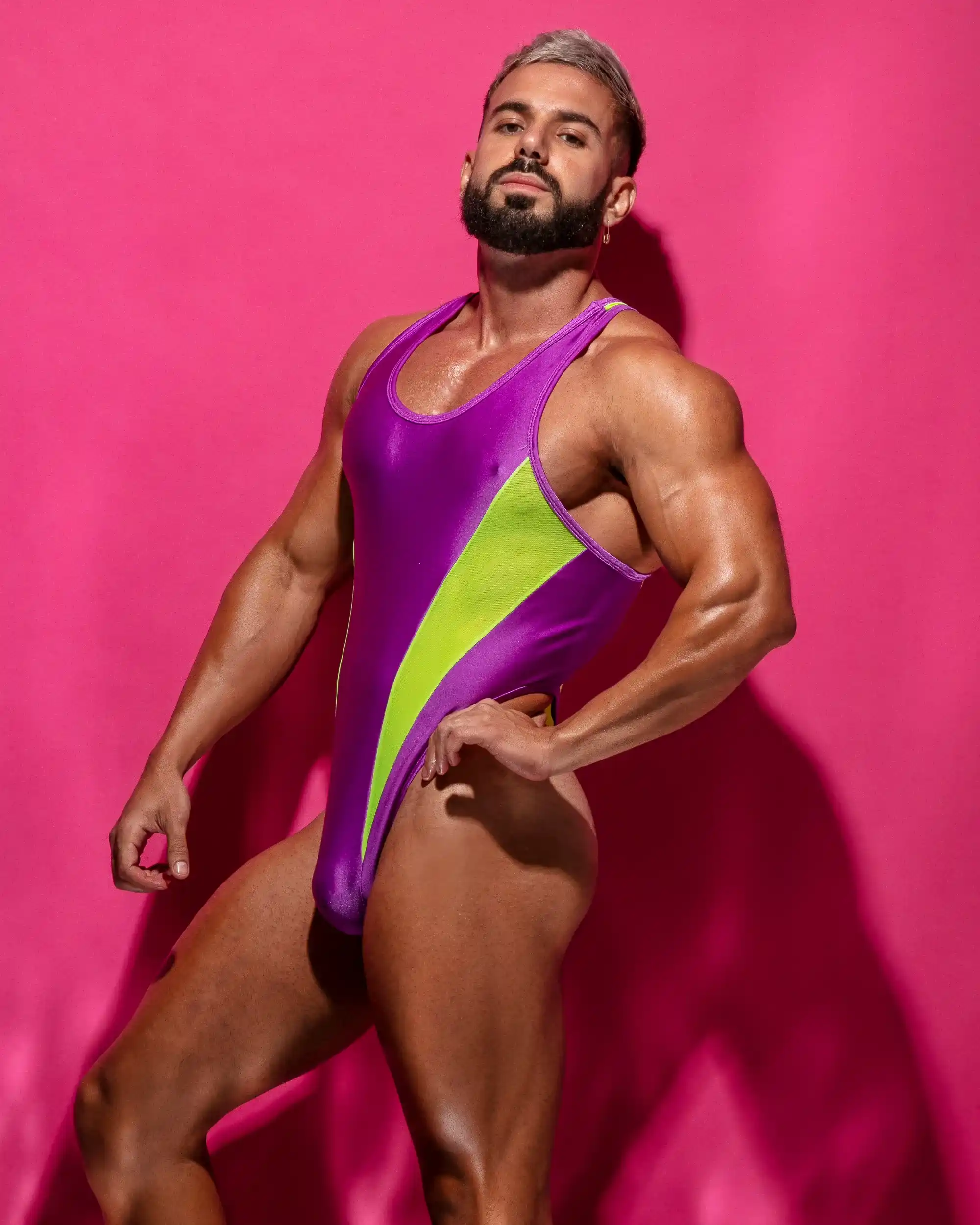 Bodysuit Tifón, es una prenda ajustada que resalta la figura masculina con estilo audaz y moderno, perfecto para ocasiones especiales.