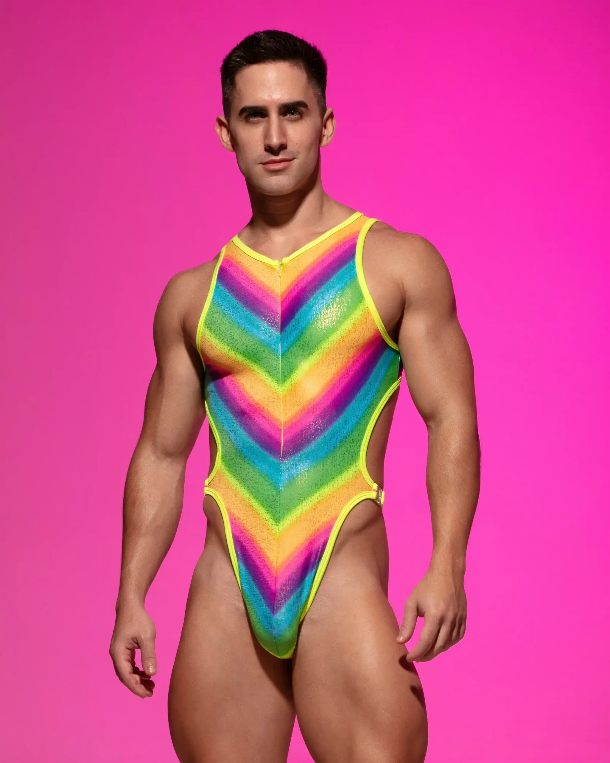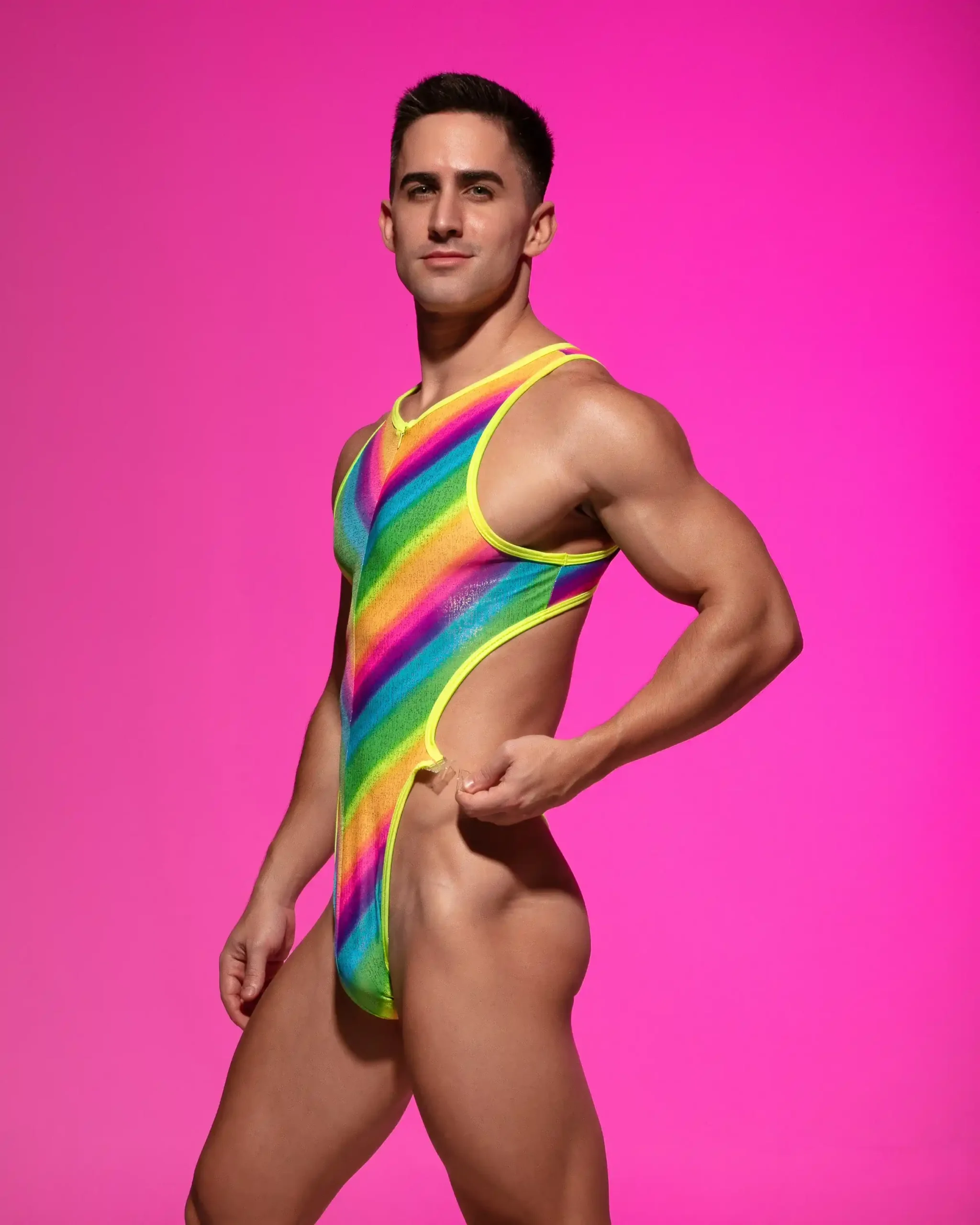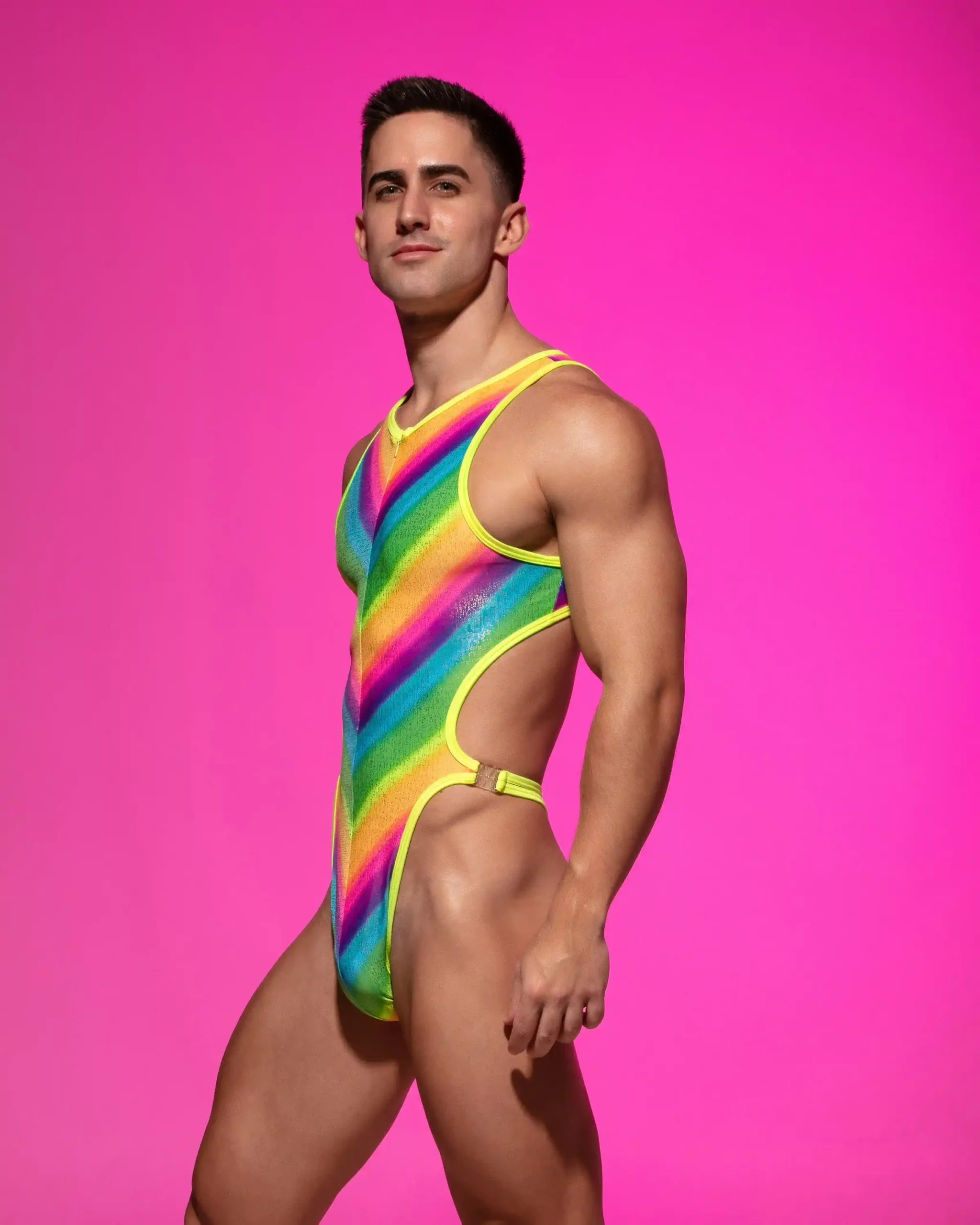 Bodysuit VULCANO CLIP Pride es atractivo muy sexy. cómodo con cremallera invisible frontal y cavado extra alto, CON CLIP que se ajustará perfectamente a tu cuerpo.