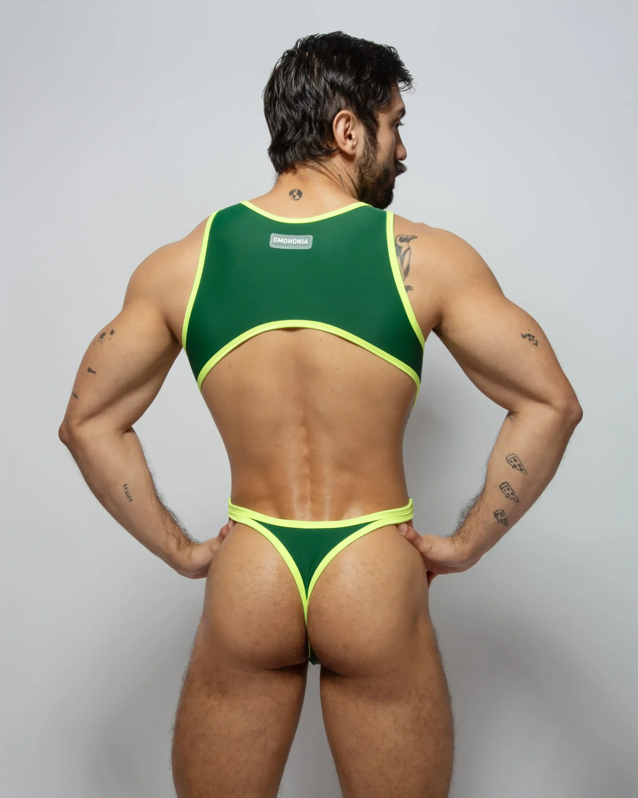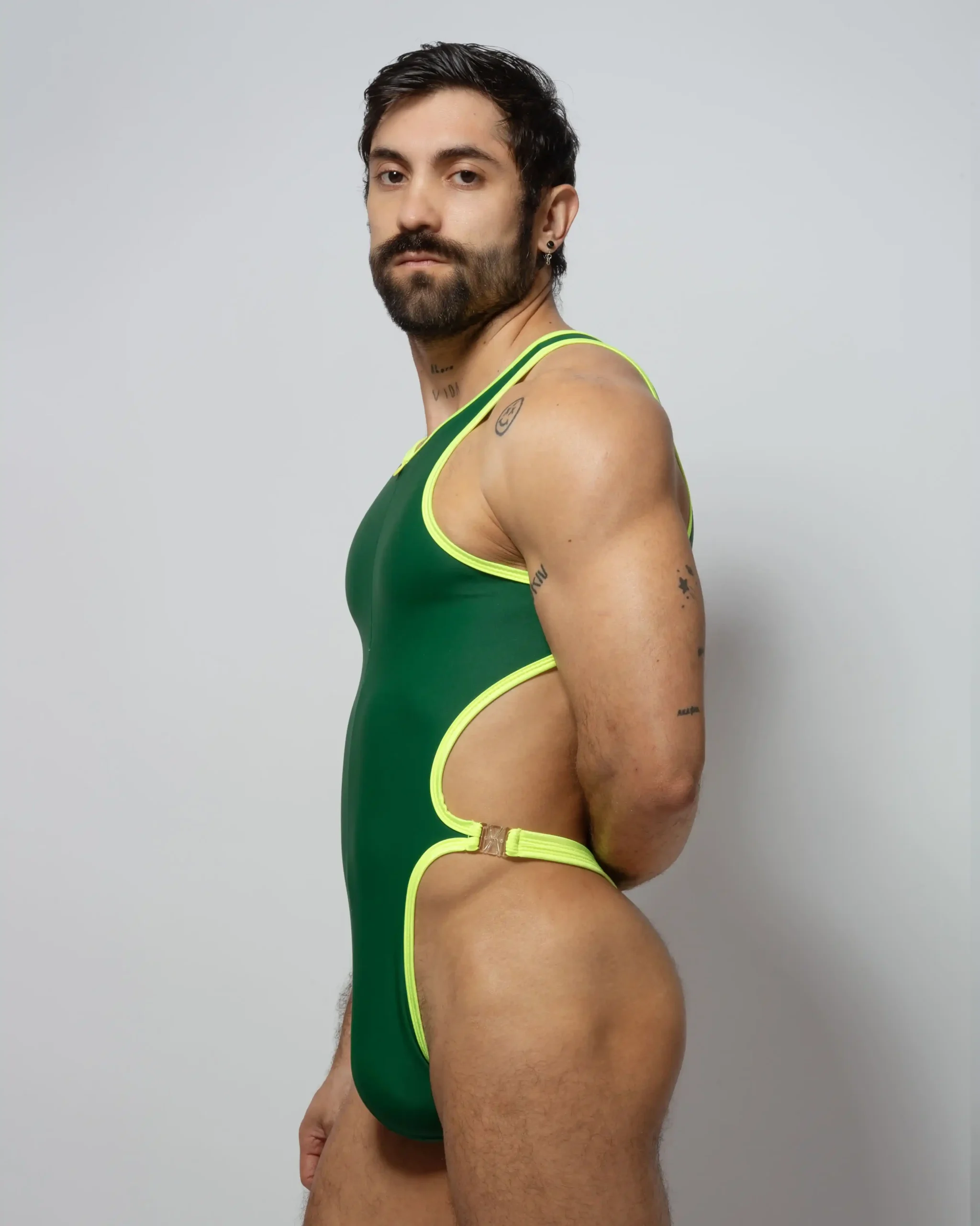 Bodysuit VULCANO Verde Neón con cremallera frontal, CON CLIP LATERALES