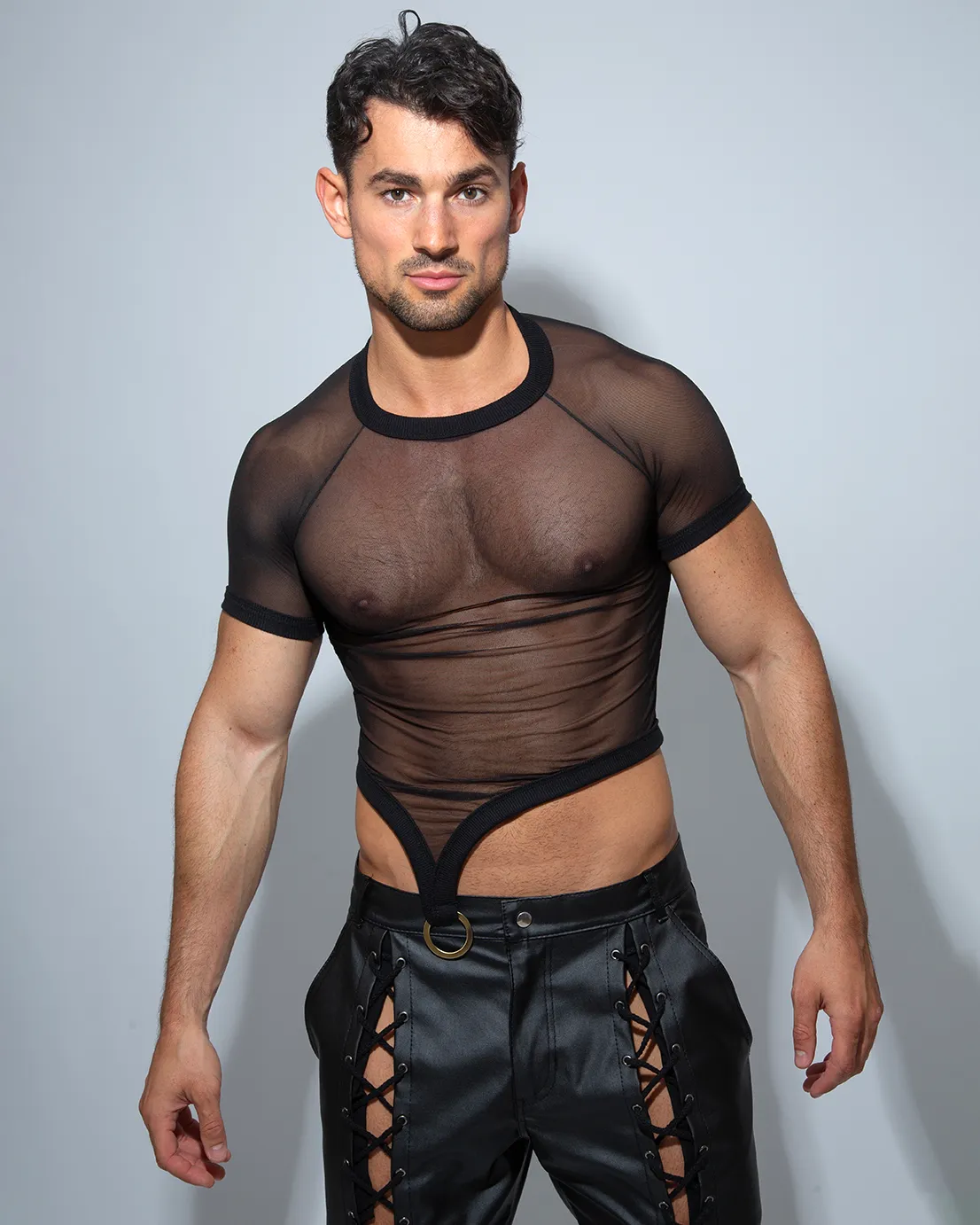Camiseta Mesh con aro de metal Experimenta un estilo único con detalle asimétrico.