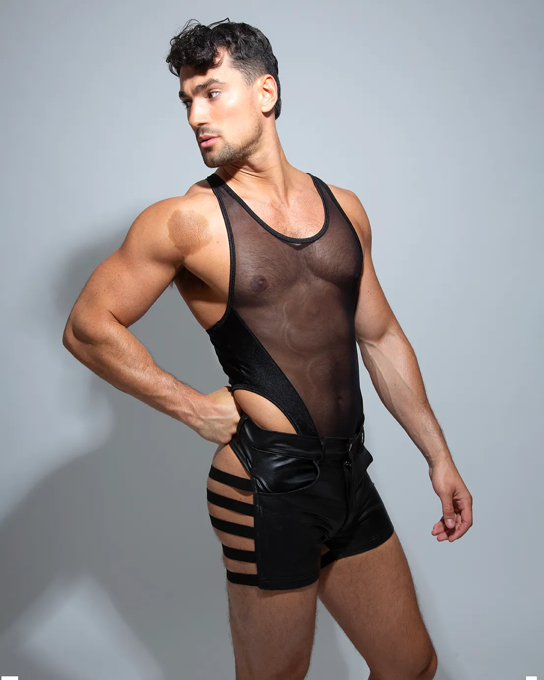 Pantalón Bondage Leather Negro un nuevo diseño FETICHE para lucir en conjunto extremadamente cómodo con los Bodysuit OMOHONIA.