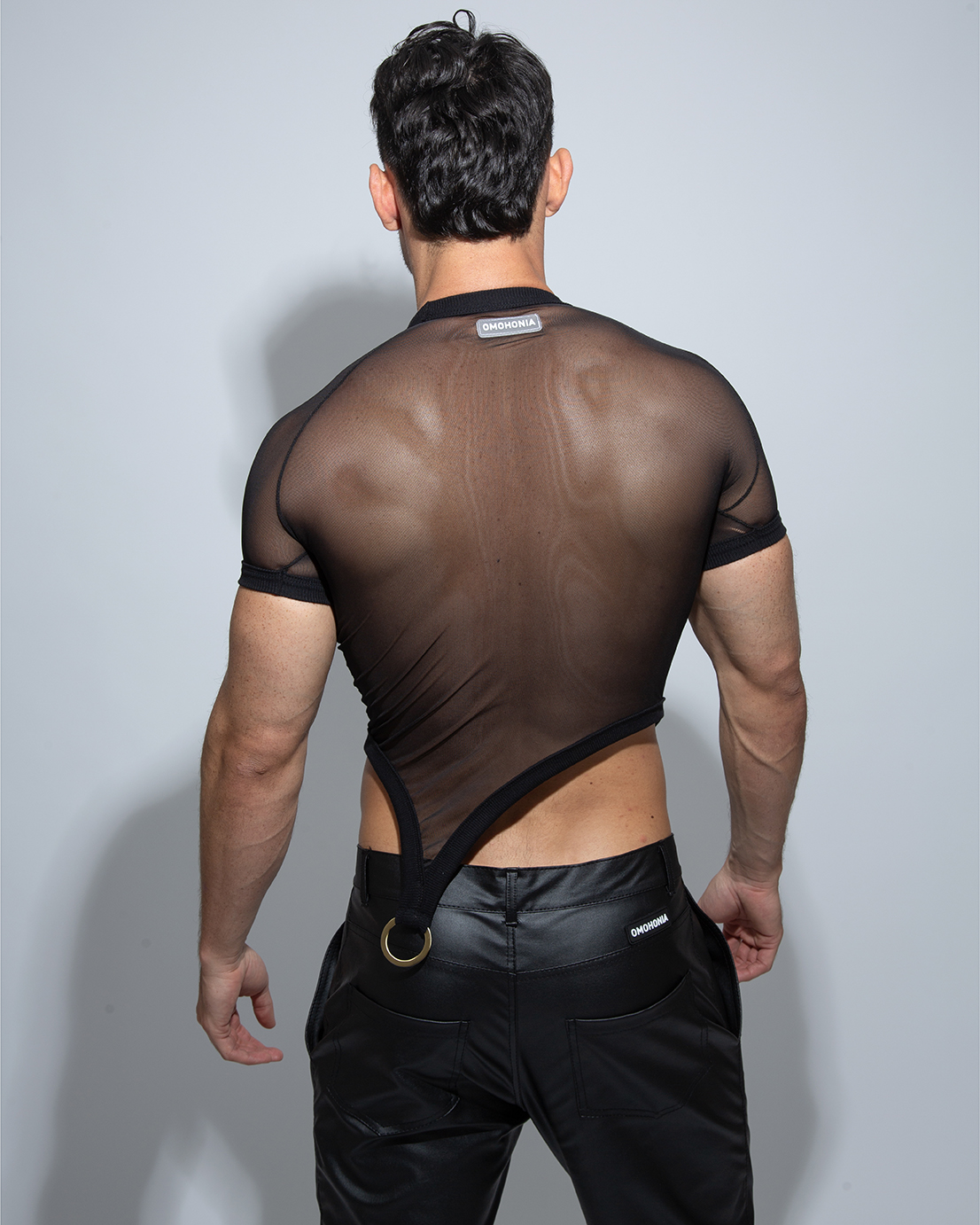 Mesh T-shirt with metal hoop