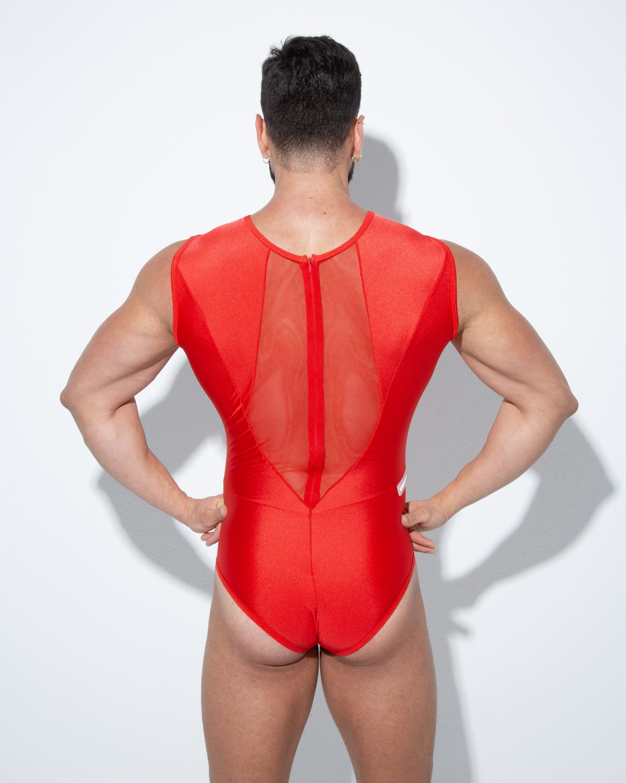 Bodysuit Eolo Rojo, Lycra negra Italiana. Tejido flexible y confortable.