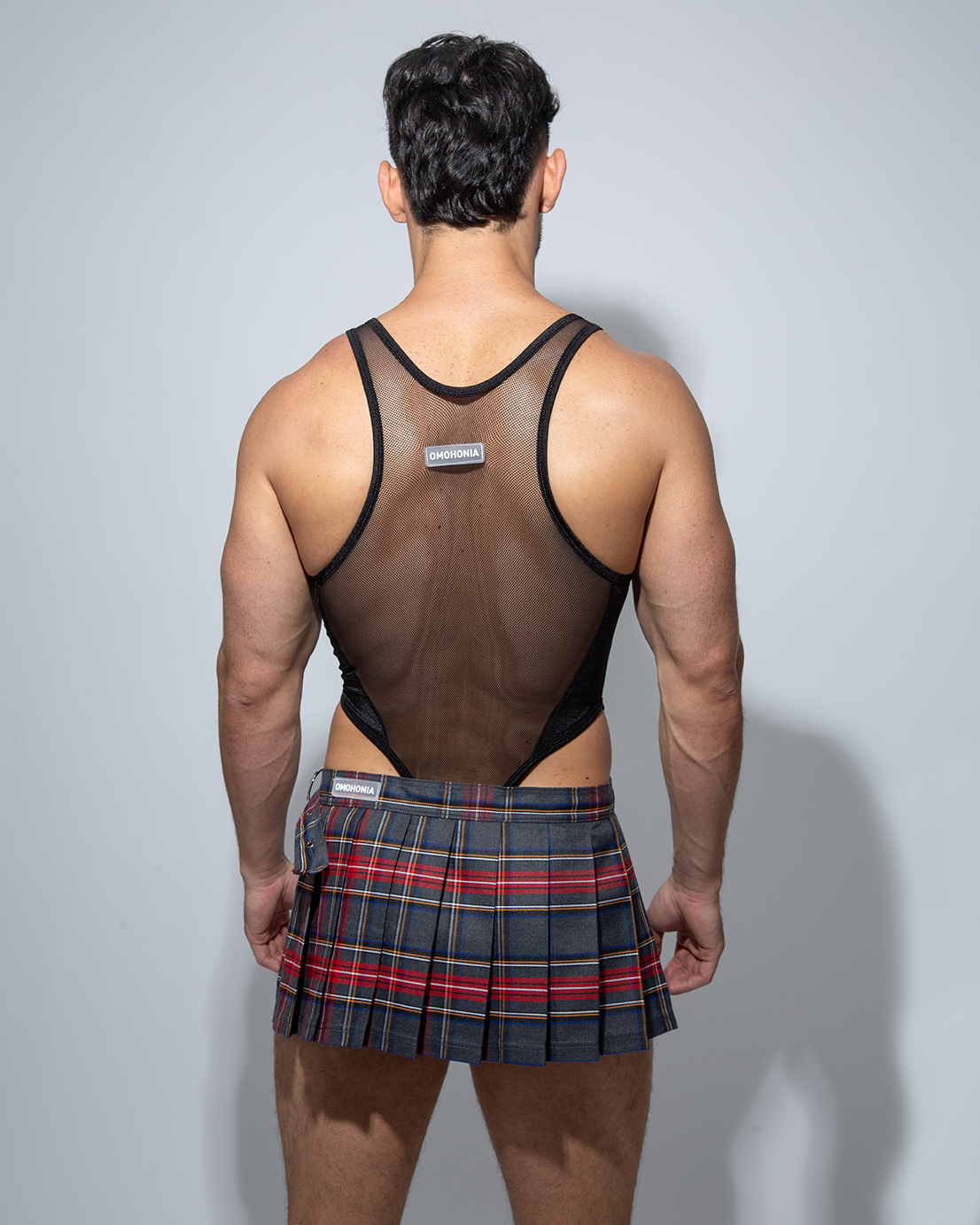 Textil de cuadros, modelo de falda con hebilla regulable.